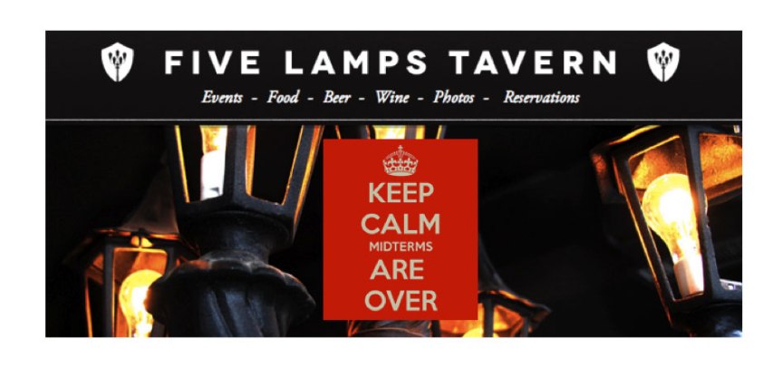 To celebrate the end of midterms, let’s get together in a new location. It’s time to charge batteries for the second part of the semester.