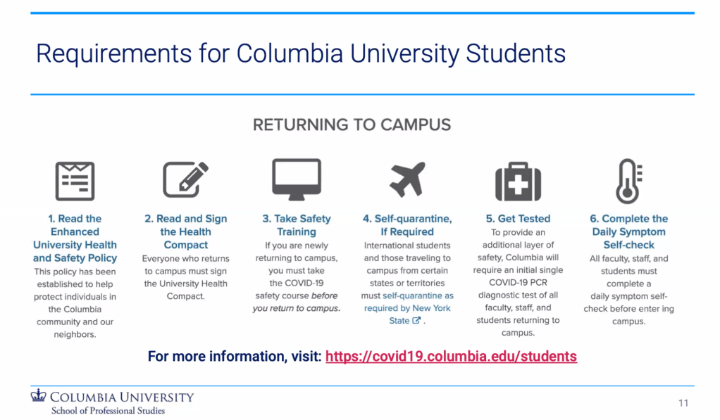 All students returning to campus must take a COVID-19 “Gateway” test. To schedule an appointment, go to the Online Patient Portal. More information on the process here.