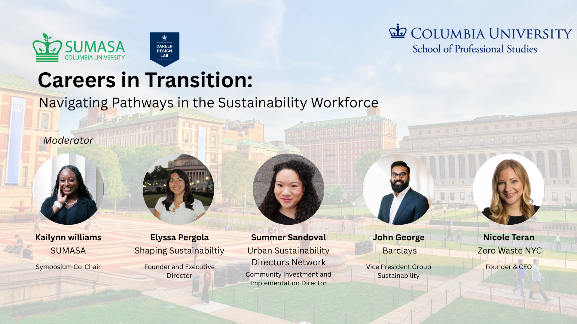 Sponsor Organizations: Student Association for Columbia University’s Master of Science in Sustainability Management (SUMA)