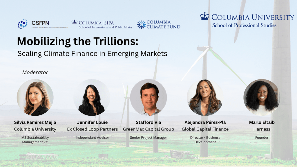 Sponsor Organizations: Columbia Sustainable Finance Professionals Network (CSFP) , Columbia Climate Fund (CCF), and CI3